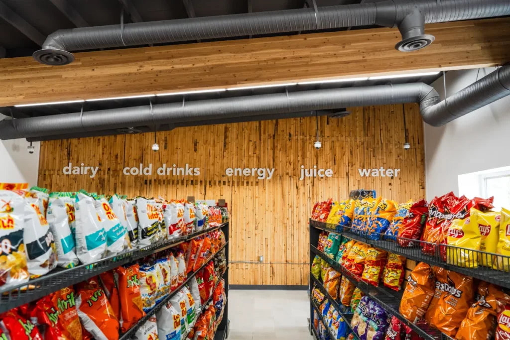 Indigenous owned and operated commercial/retail venture in Saddle Lake AB featuring Heritage Timber Products floors, walls and ceilings.